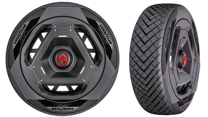 El futurista neumático, que además integra un avanzado sensor para informar en tiempo real su estado, desempeño y eventuales emergencias, es fruto de un trabajo conjunto entre Goodyear y Citroën.