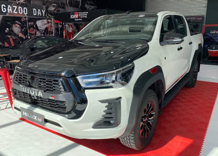 En el habitáculo se pueden observar emblemas de la división deportiva de Toyota en los apoyacabezas y el botón de encendido, así como butacas con costuras rojas y un volante forrado en cuero microperforado con diseño de Gazoo Racing. Con una potencia máxima de 201 hp a 3.400 rpm, el vehículo mejora principalmente en la suspensión que fue desarrollada por la división deportiva de la marca japonesa. Hilux GR-S: la tercera generación para nuevos desafíos El último de los lanzamientos que se realizó en la planta de Toyota en Argentina fue la tercera generación del pick-up Hilux GR-S, modelo que al igual que el Fortuner, Corolla Cross, llega con renovaciones estéticas que le entregan una apariencia aún más deportiva.